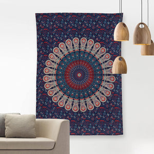 Hippie Bohemian Psychedelic Peacock Mandala Wall Hanging Bedding Tapestry (Midnight Blue)