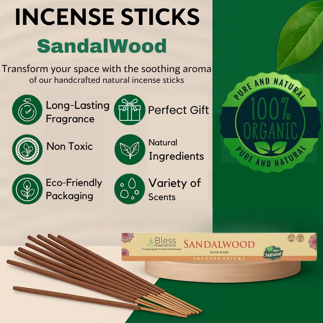 100% Natural Incense Sticks Handmade Hand Dipped The Best Scent (Sandalwood)